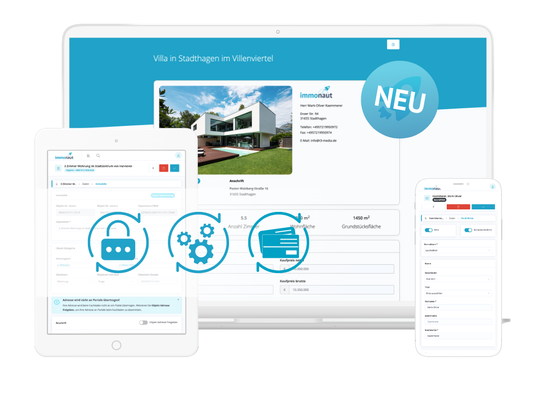 Für den Makler bedeutet das: Immobilie einmal anlegen, in die Portale hochladen – die Kommunikation läuft automatisch. Zusätzlich bietet die Cloud-Lösung Suchanfragen, Adressvervollständigung und Aktivitätsnachweise. Exposés, Landingpages und CI-Designs lassen sich flexibel anpassen – bis hin zu Broschüren für Großprojekte.